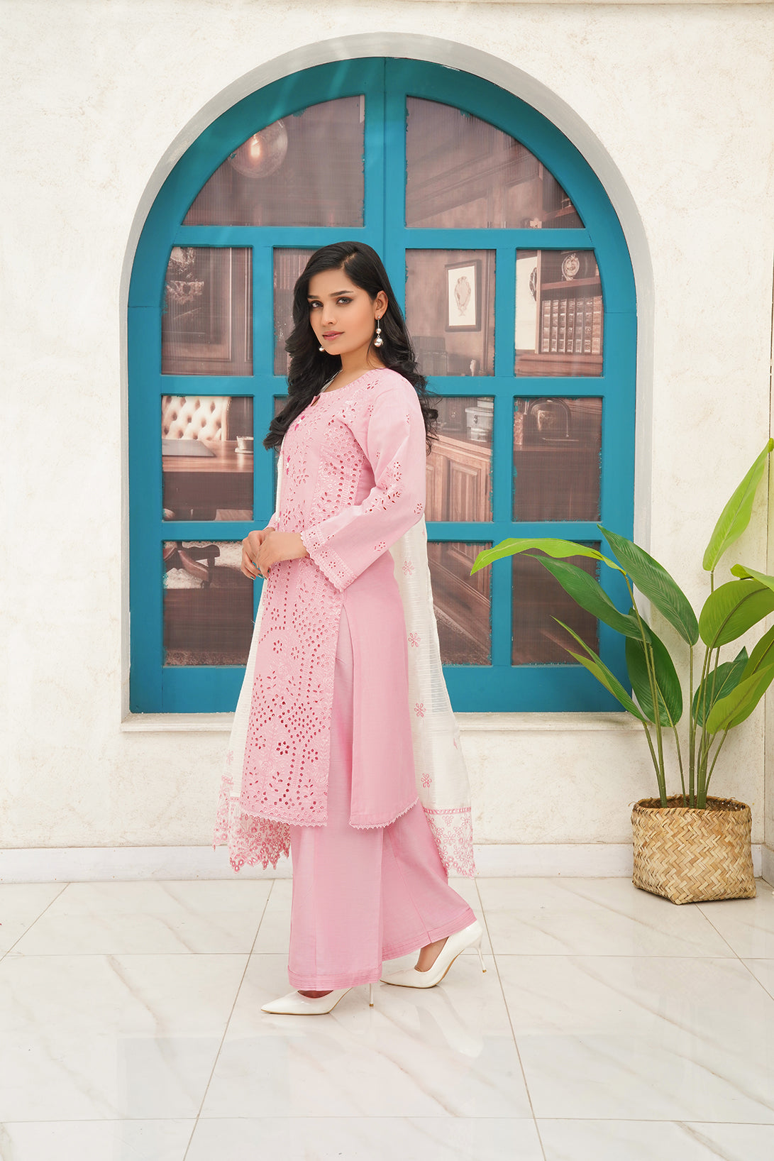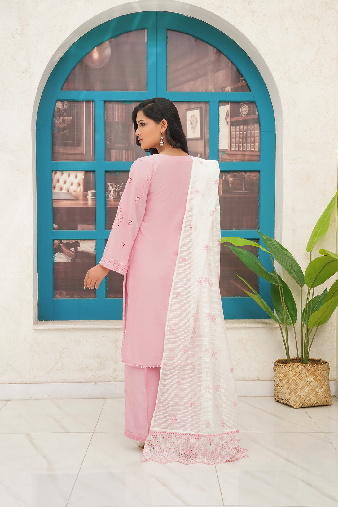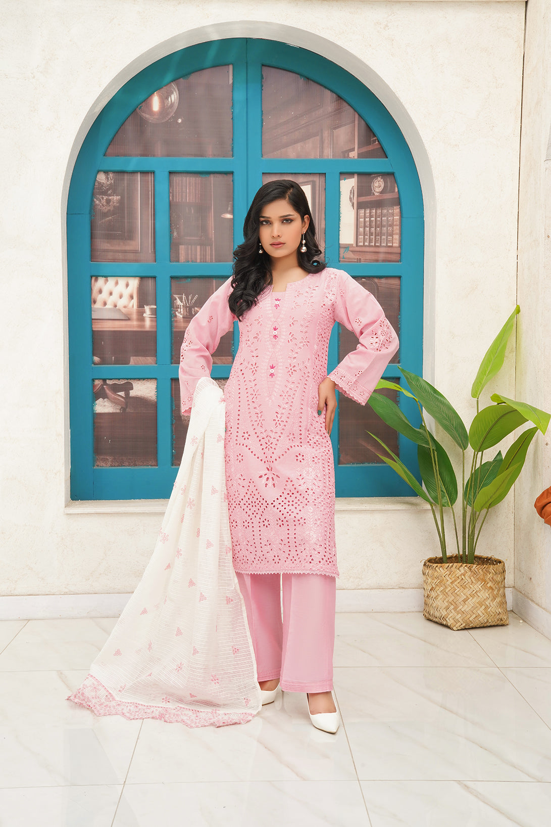 This Is a three-piece Stitched Outfit Come with Chambray fabric fully Embroidered Shirt Embroidered Dupatta and Trouser