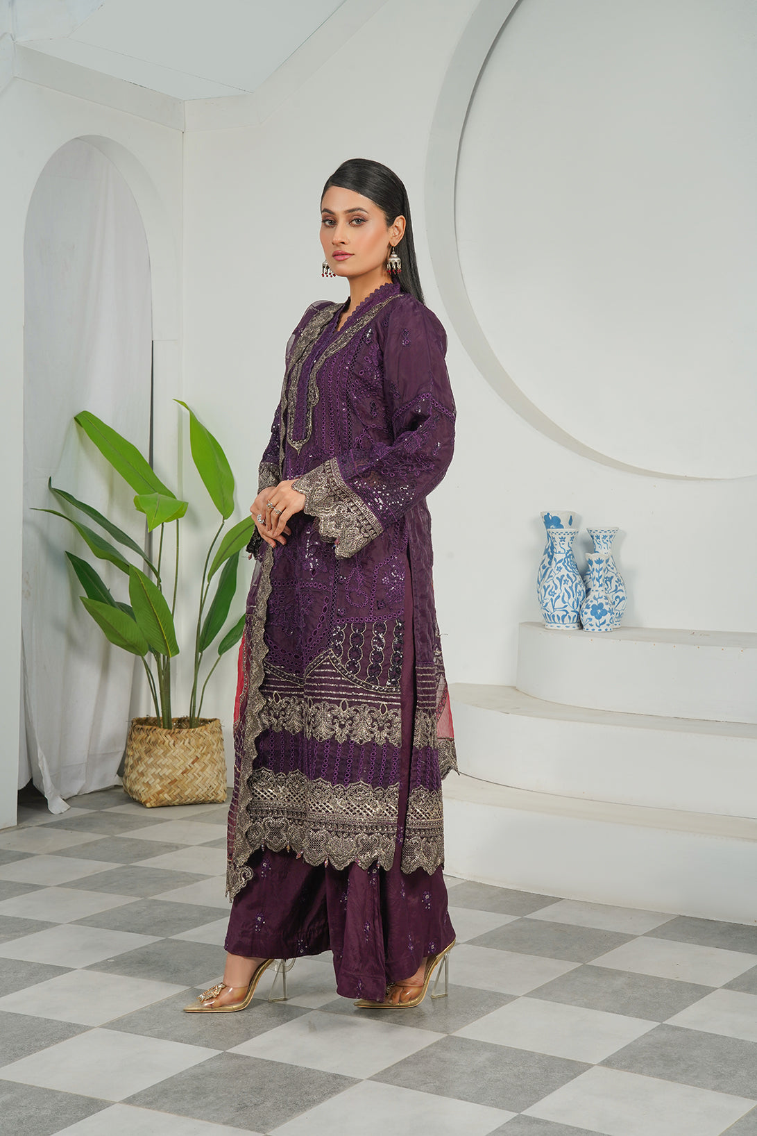 This Is a three-piece Stitched Outfit Come with Cambric fabric fully Embroidered Shirt Embroidered Dupatta and Trouser