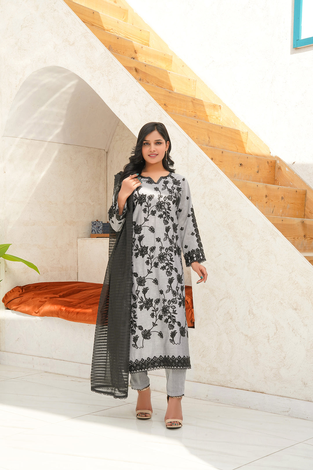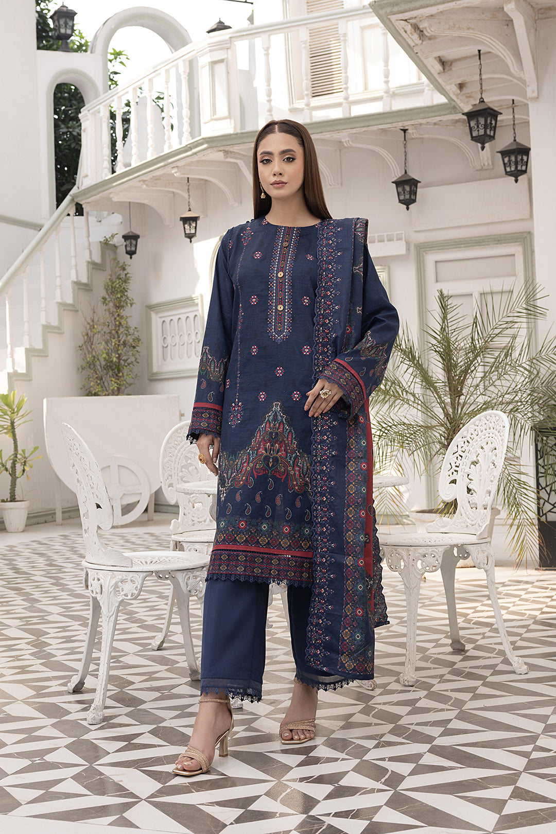 3-PC Fancy Embroidered Viscose