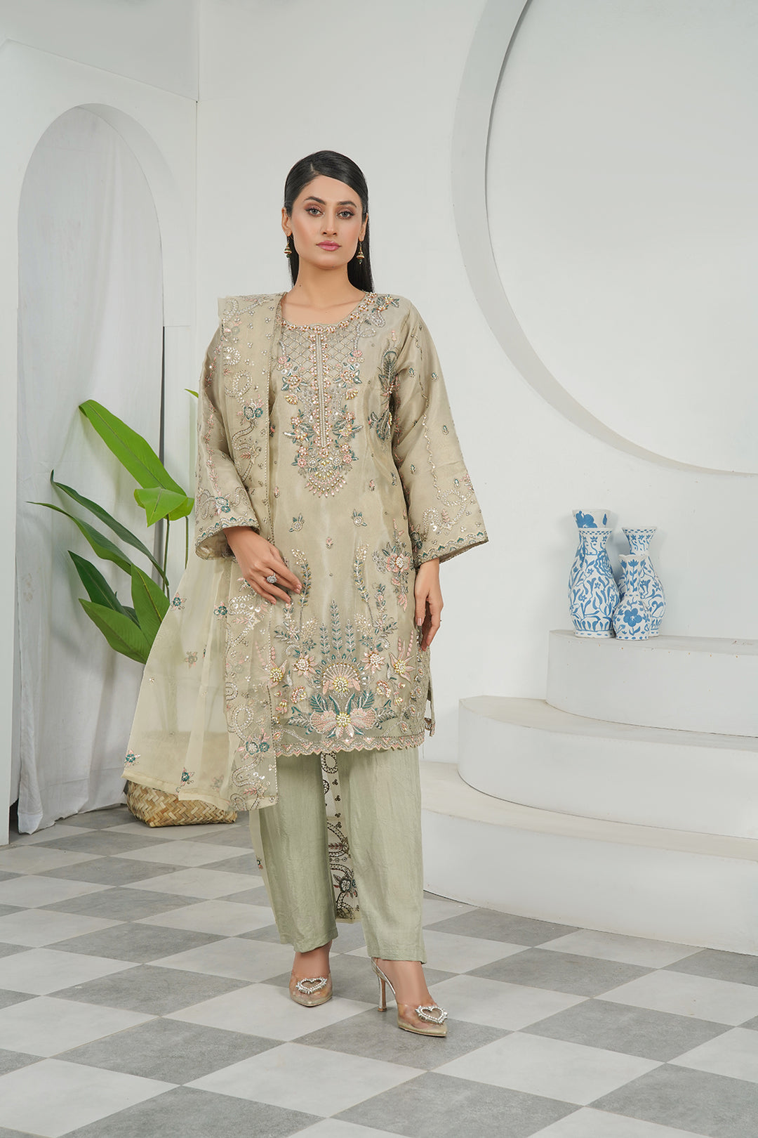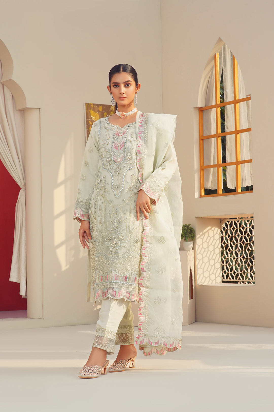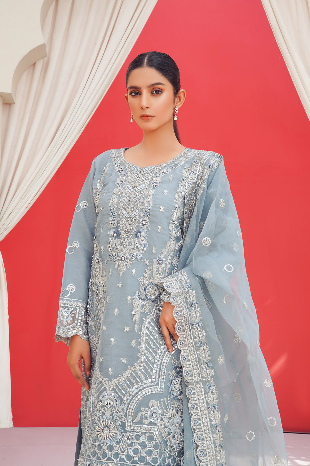 3-PC Fancy Embroided Organza & Jacquard
