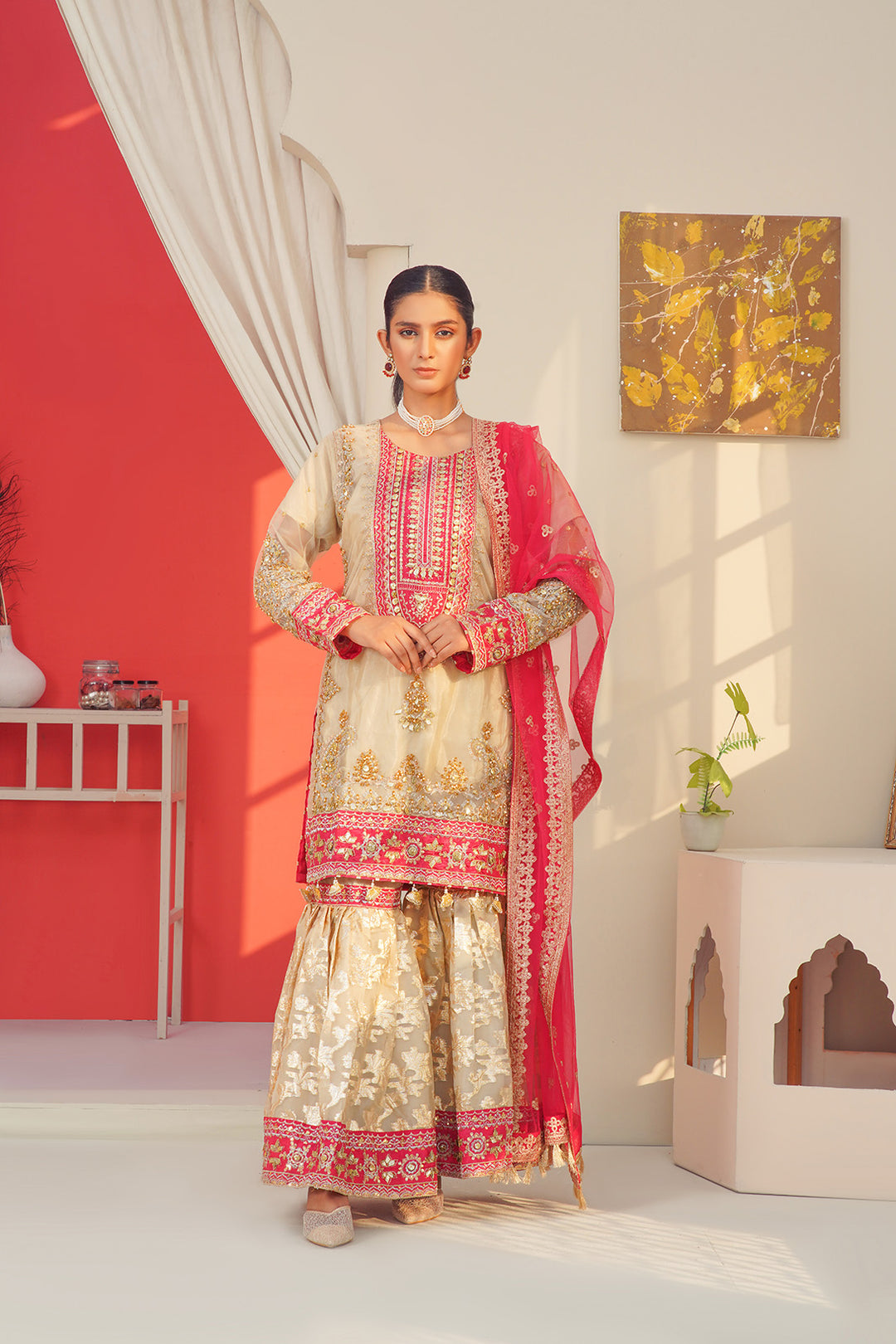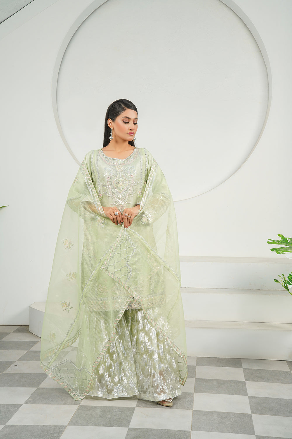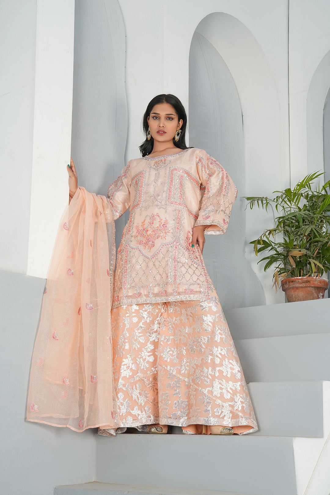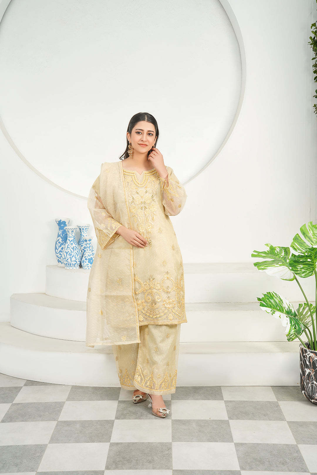 3-PC Fancy Embroided Organza & Jacquard