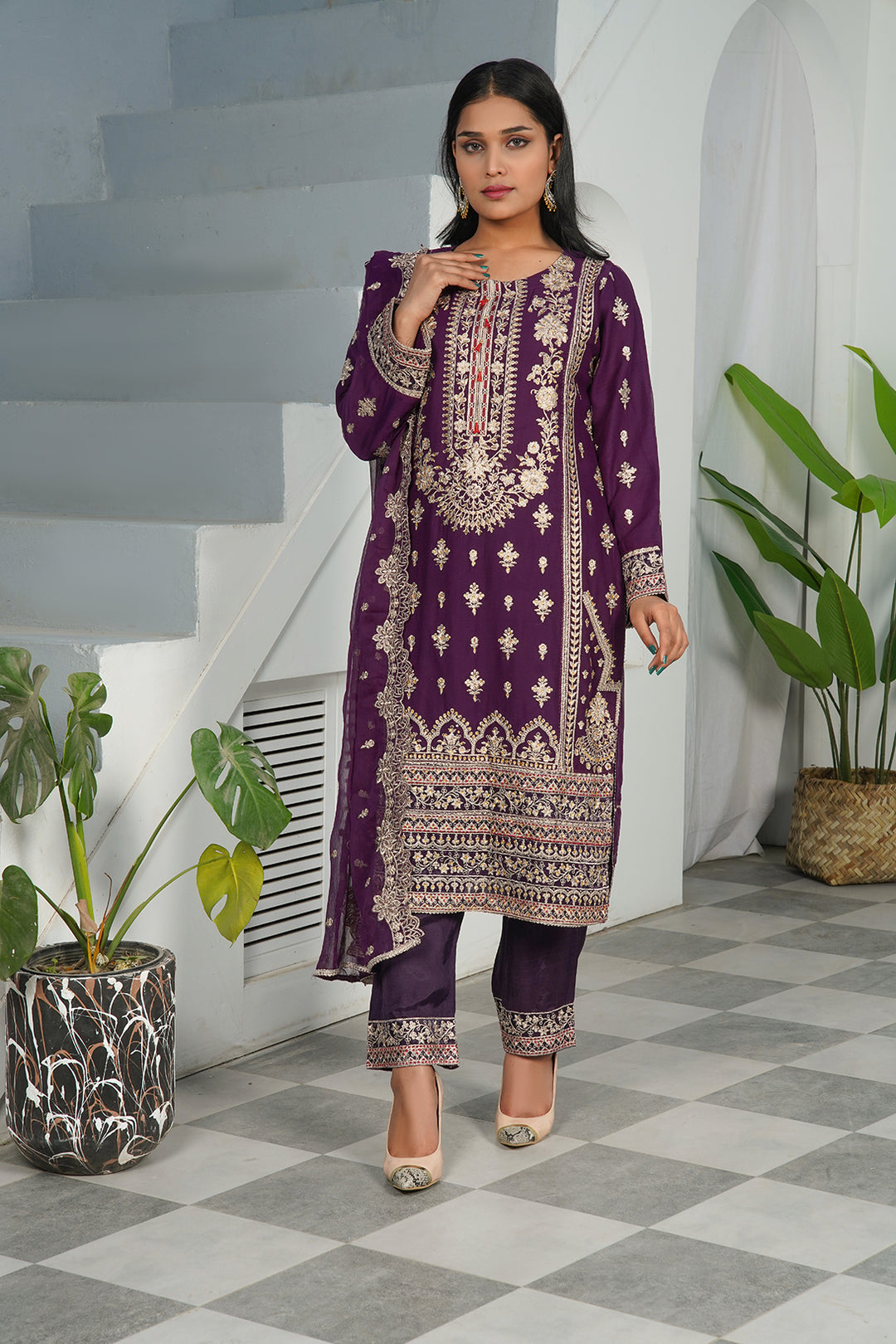 3-PC Fancy Embroided Velvet