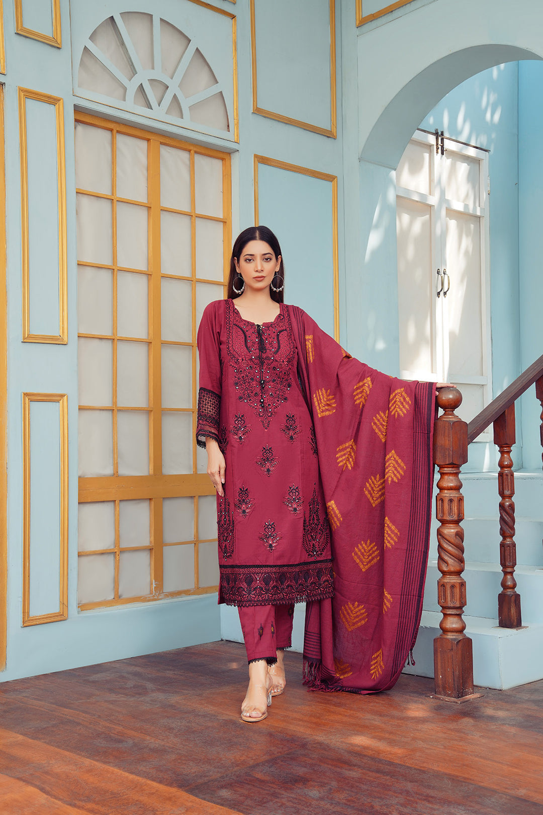 3-PC Fancy Embroidered Dress