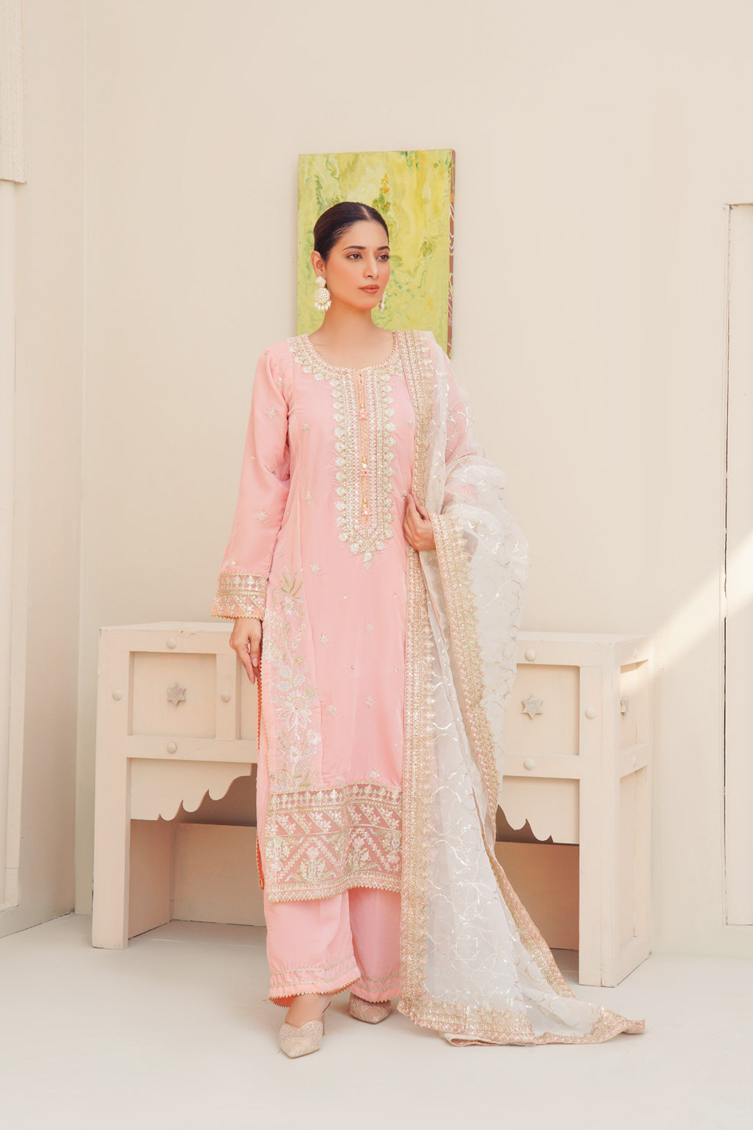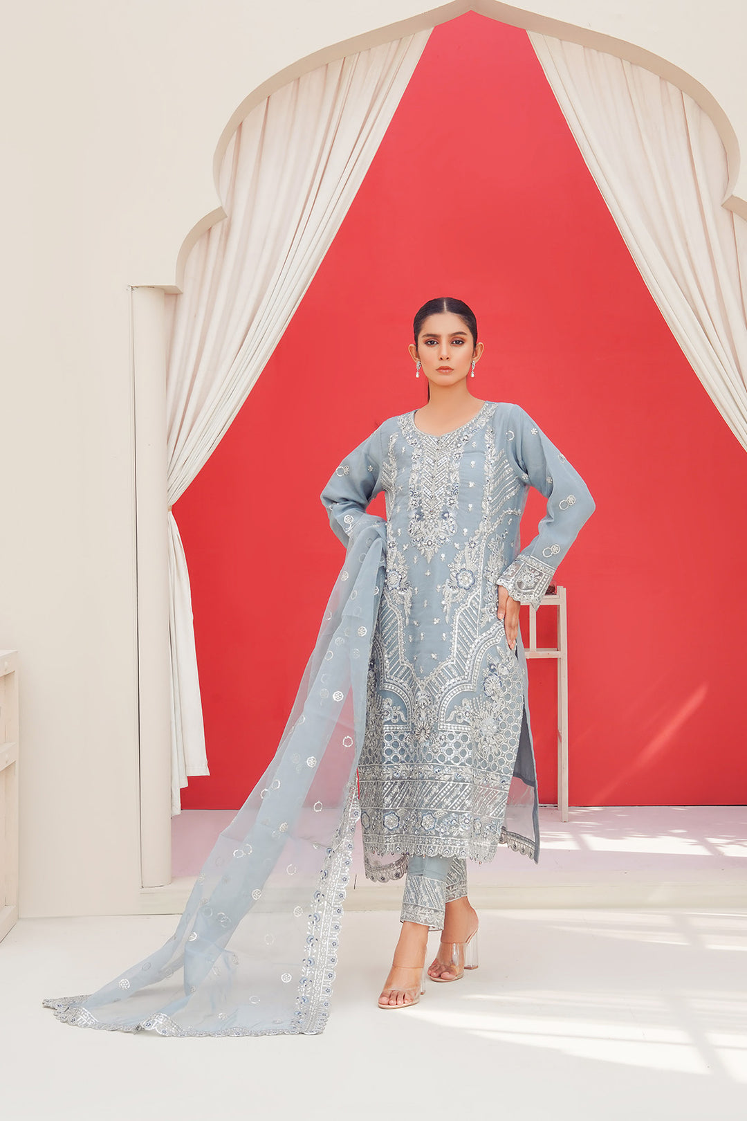 3-PC Fancy Embroidered Organza