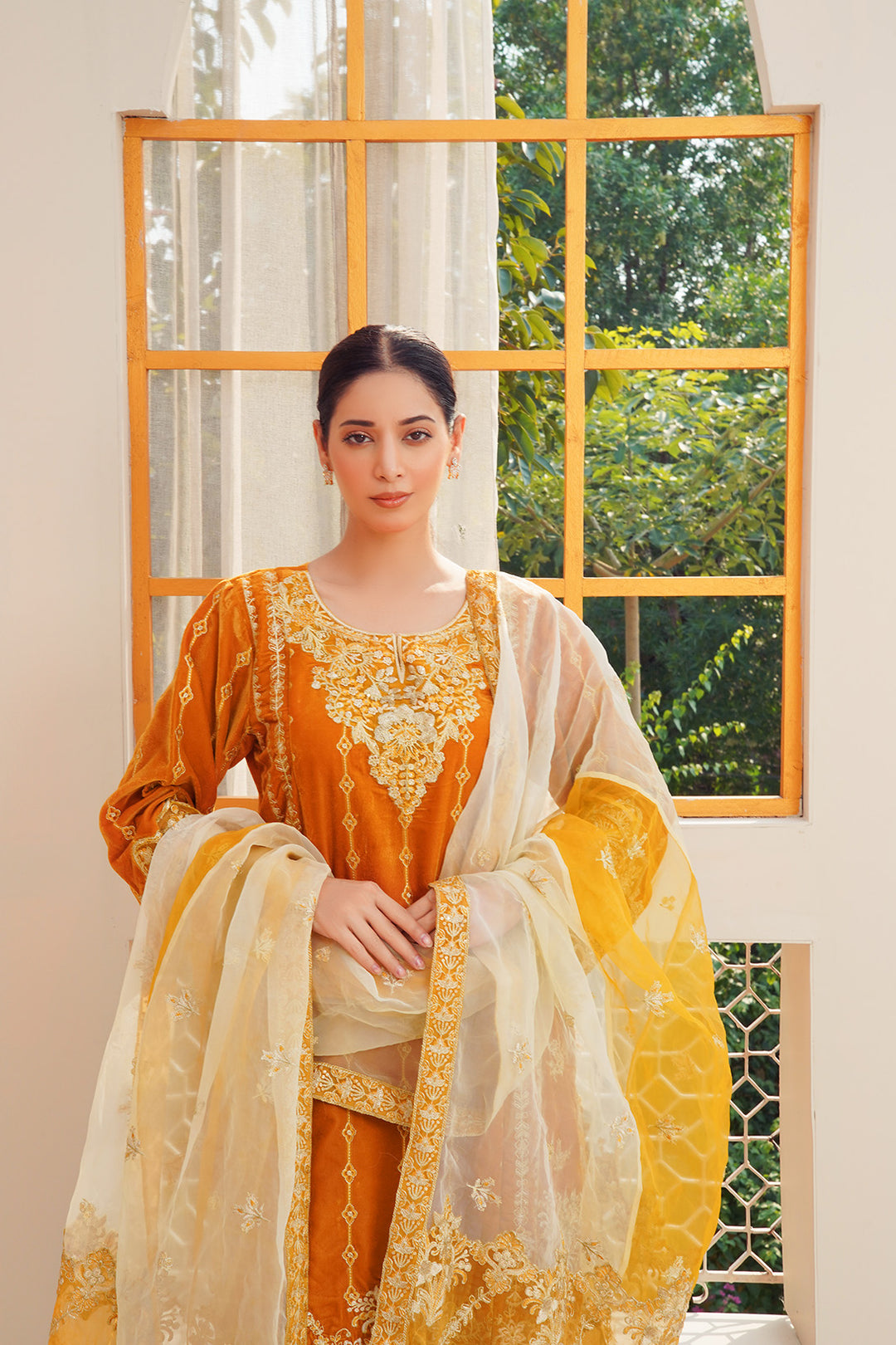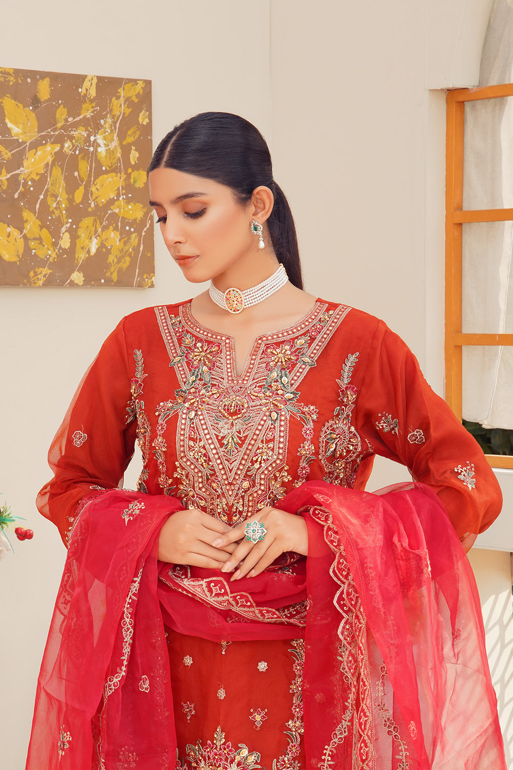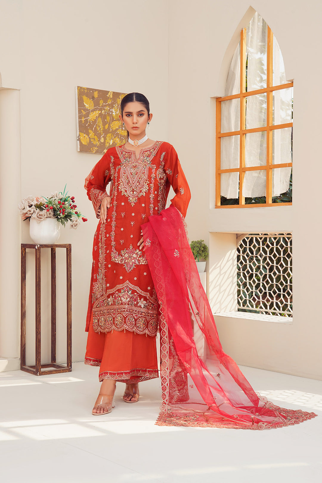 3-PC Fancy Embroidered Organza & Raw Silk
