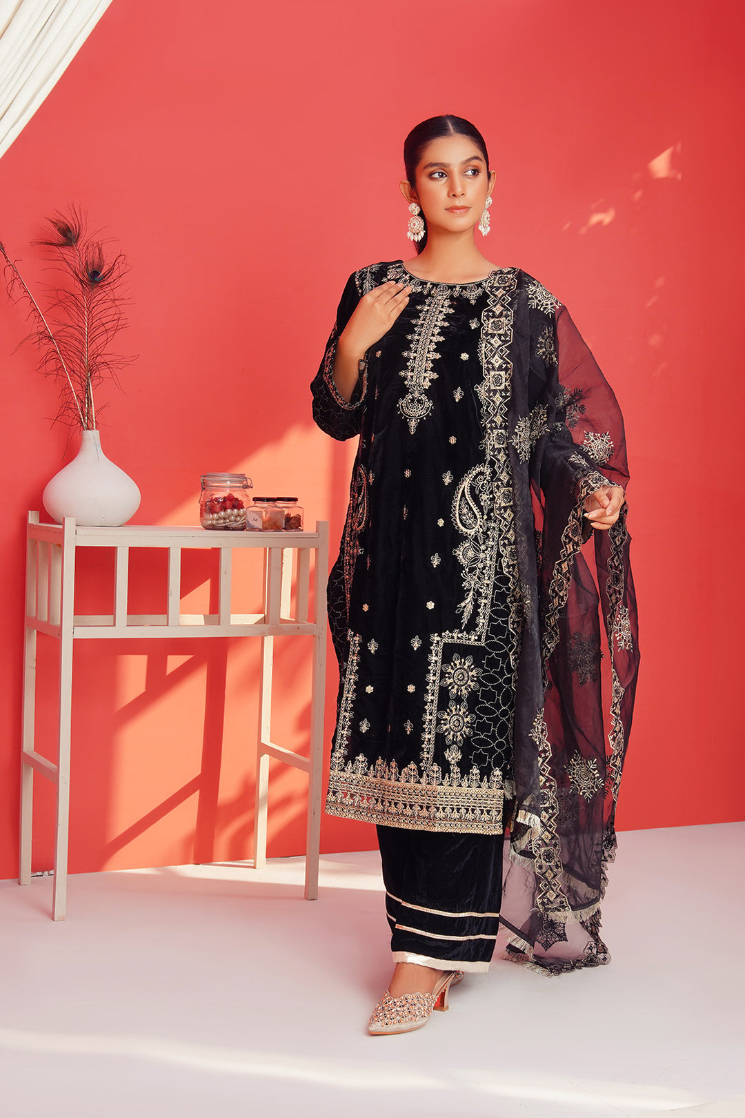 3-PC Fancy Embroided Velvot