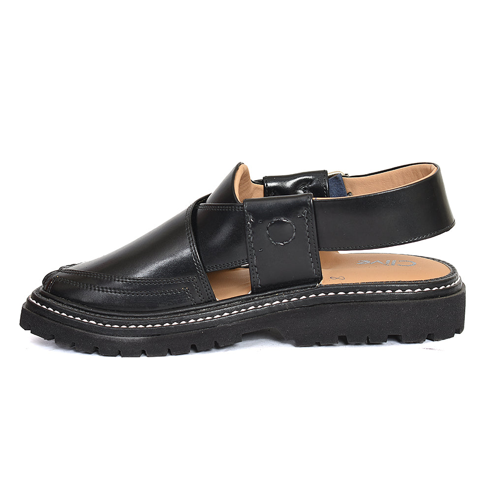 Clive Peshawari is a semi-closed shoe which consists of two wide straps crossed and joined with the sole, plus a strap with a buckle to tie according to the foot size and level of comfort which gives you a more elegant look