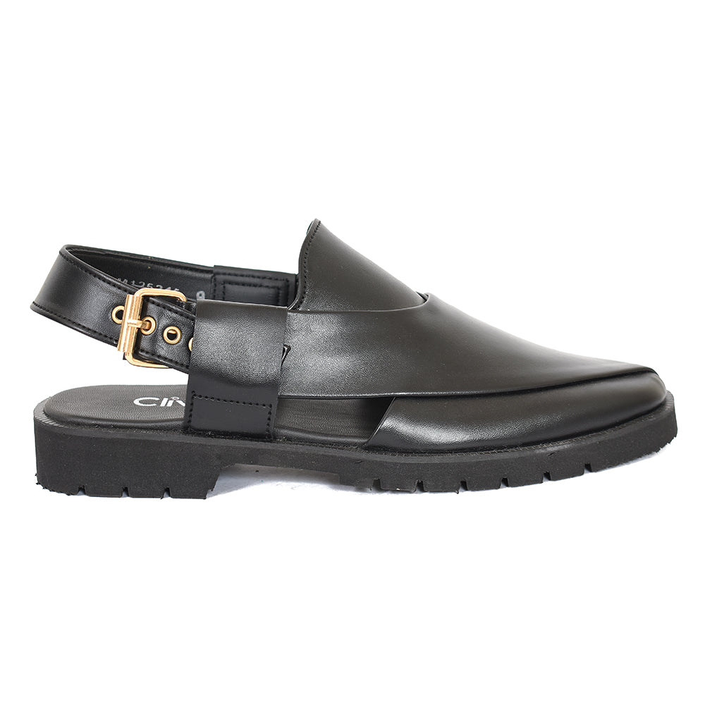Clive Peshawari is a semi-closed shoe which consists of two wide straps crossed and joined with the sole, plus a strap with a buckle to tie according to the foot size and level of comfort which gives you a more elegant look