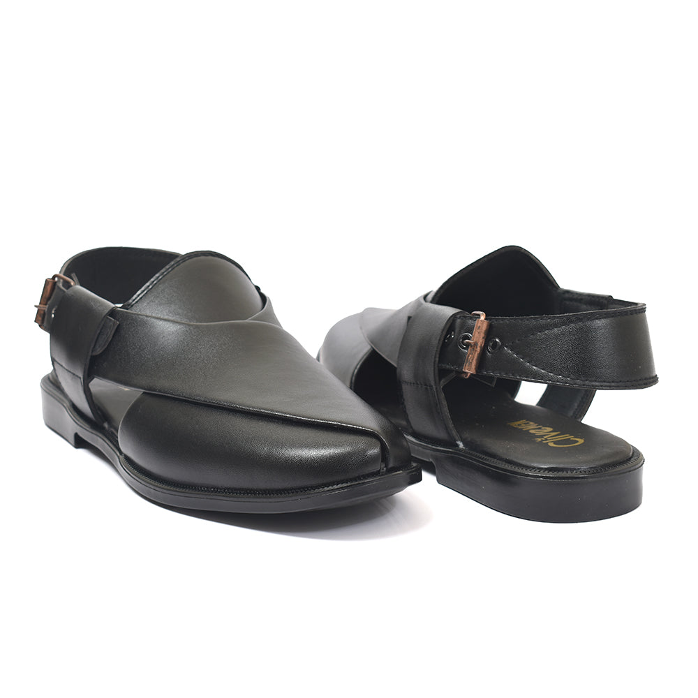 Clive Peshawari is a semi-closed shoe which consists of two wide straps crossed and joined with the sole, plus a strap with a buckle to tie according to the foot size and level of comfort which gives you a more elegant look