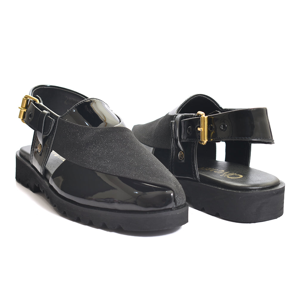 Clive Peshawari is a semi-closed shoe which consists of two wide straps crossed and joined with the sole, plus a strap with a buckle to tie according to the foot size and level of comfort which gives you a more elegant look