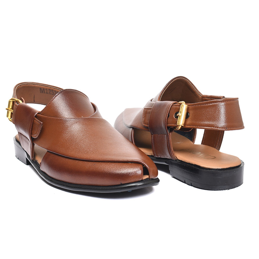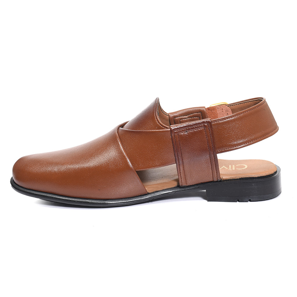Clive Peshawari is a semi-closed shoe which consists of two wide straps crossed and joined with the sole, plus a strap with a buckle to tie according to the foot size and level of comfort which gives you a more elegant look