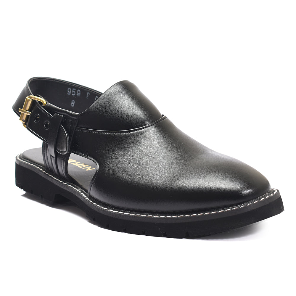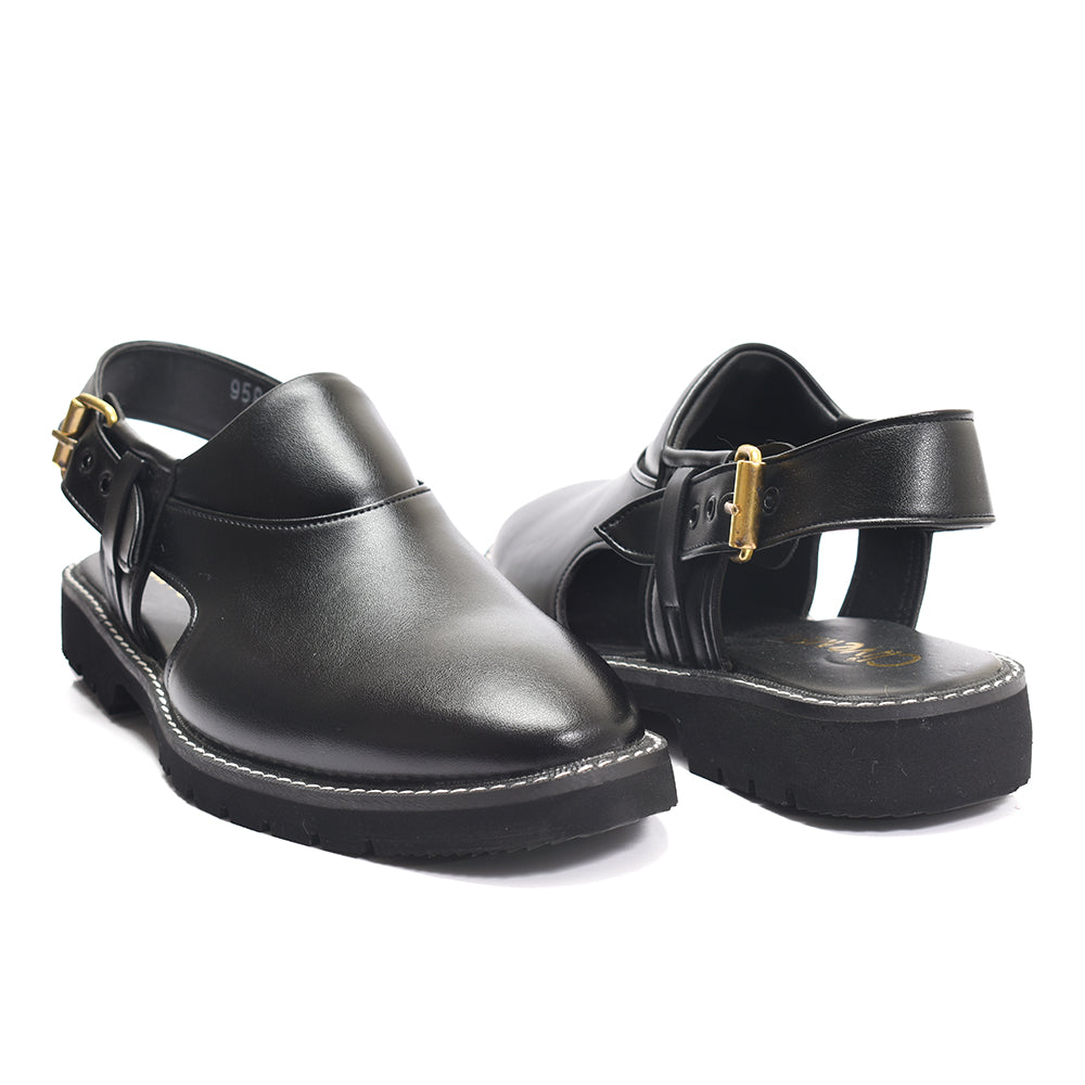 Clive Peshawari is a semi-closed shoe which consists of two wide straps crossed and joined with the sole, plus a strap with a buckle to tie according to the foot size and level of comfort which gives you a more elegant look
