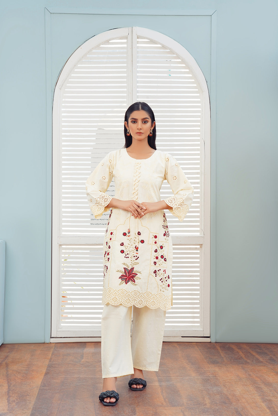 This is a two-piece stitched outfit come with Cambric Embroidered Shirt and Trouser