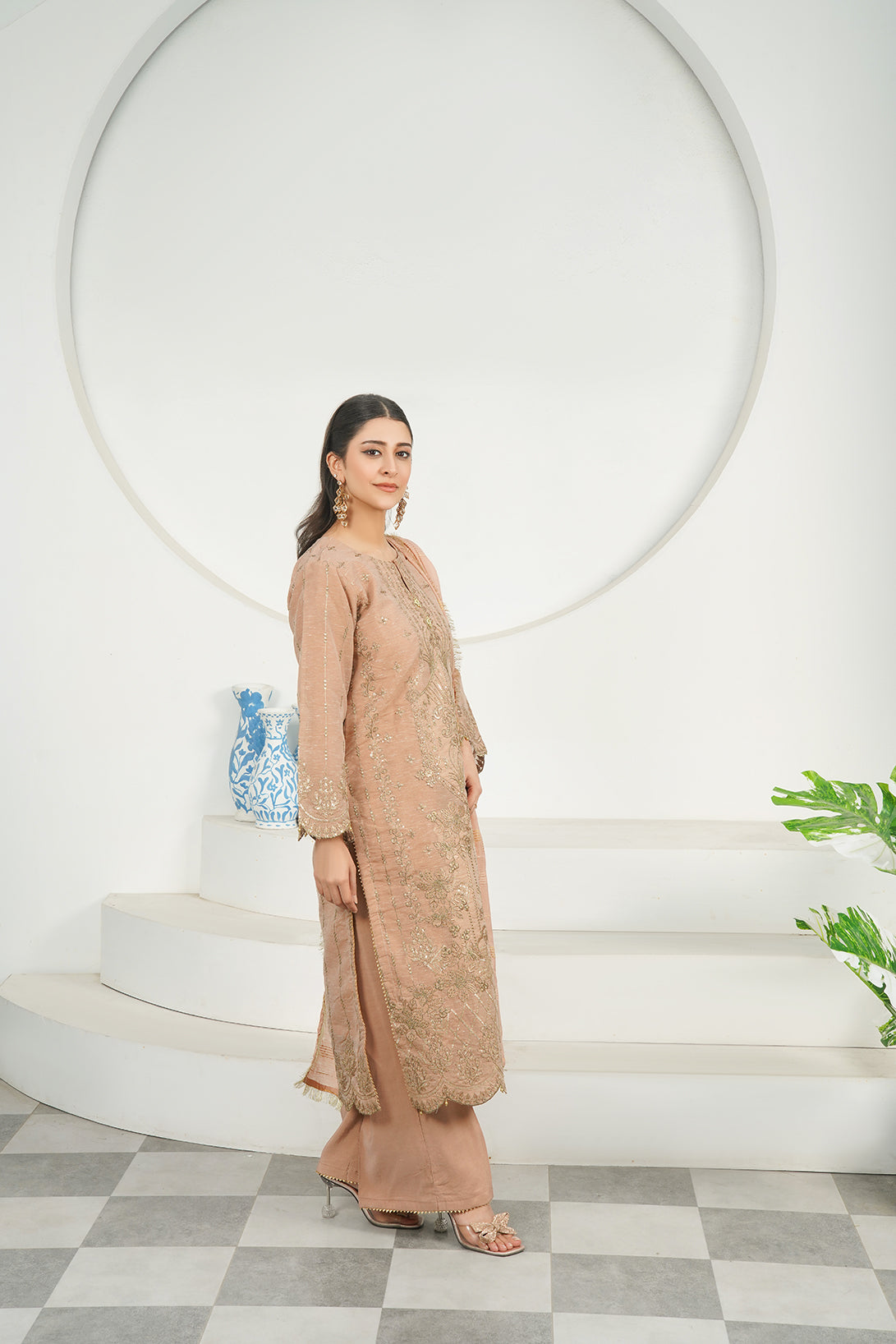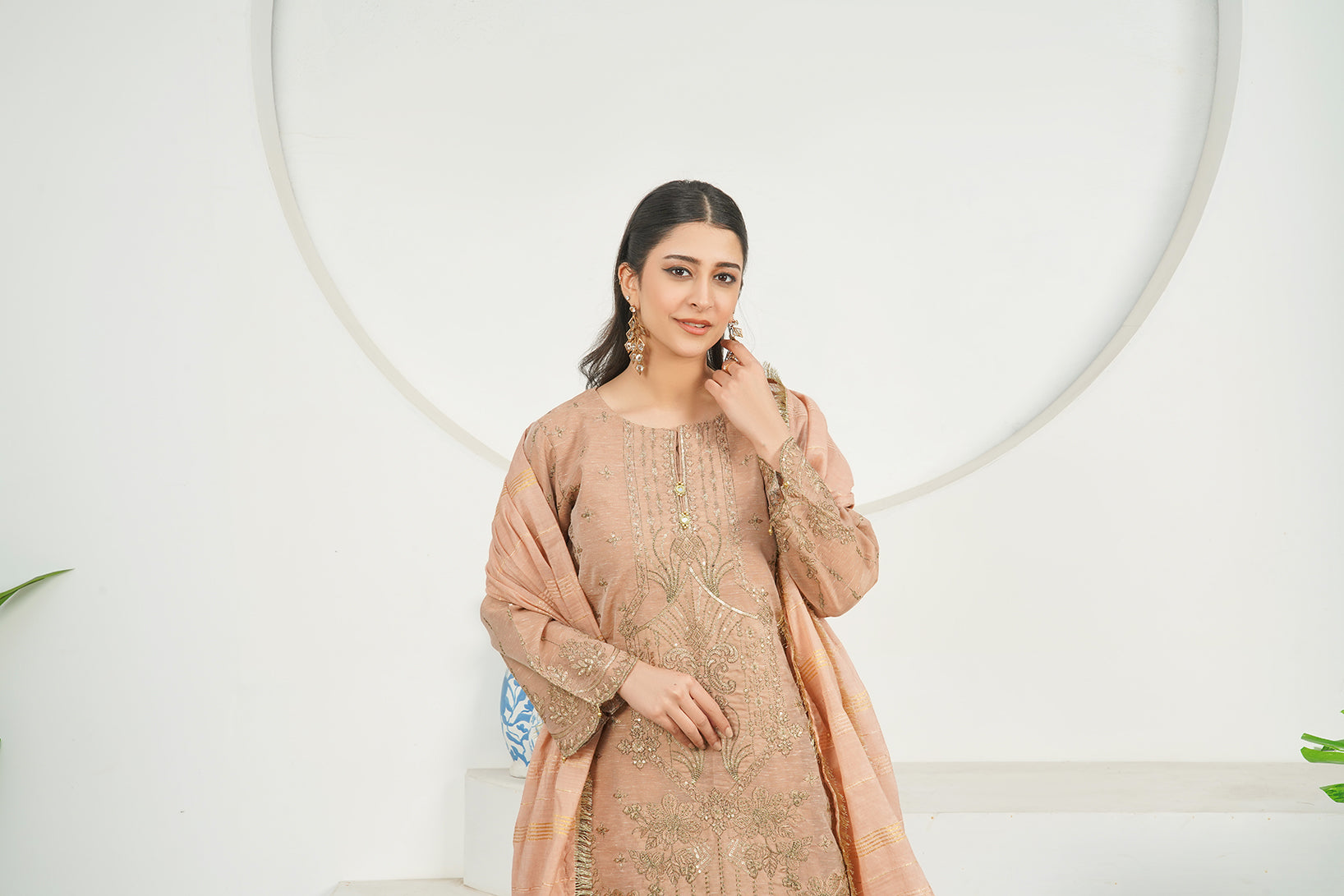 This Is a three-piece Stitched Outfit Come with Poly Slub fabric fully Embroidered Shirt Embroidered Dupatta and Trouser
